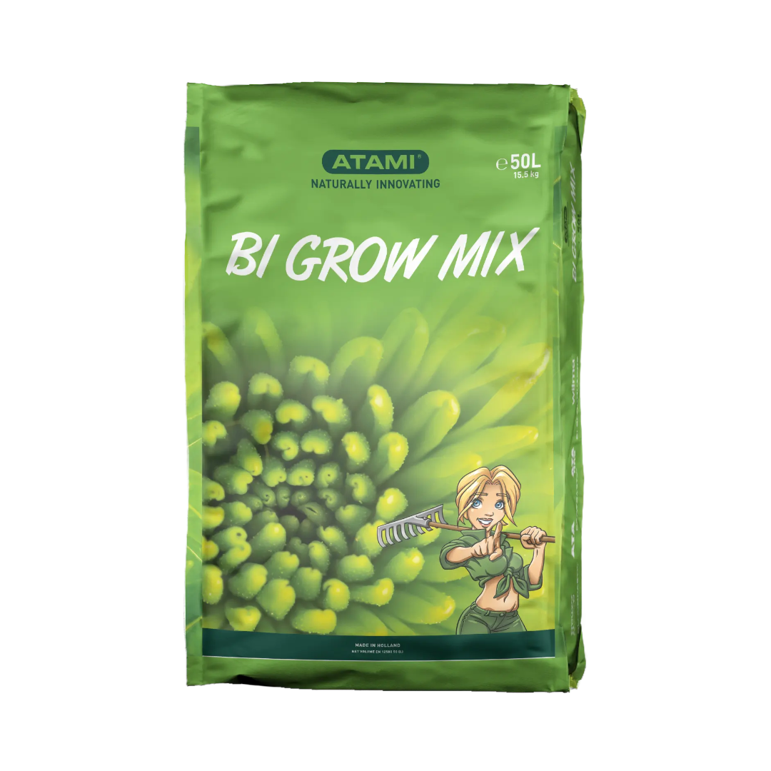 As far as the amount and ratio of fertilizers is concerned, this substrate can be considered medium. By this we mean that when growing on Bi-Grow mix, extra liquid fertilizers are present in the start-up phase. Atami advises to add liquid fertilizer after this period to the crop for optimal results. The mix derives its name from its composition of 20% of coco fibres and chips that provide additional air chambers.