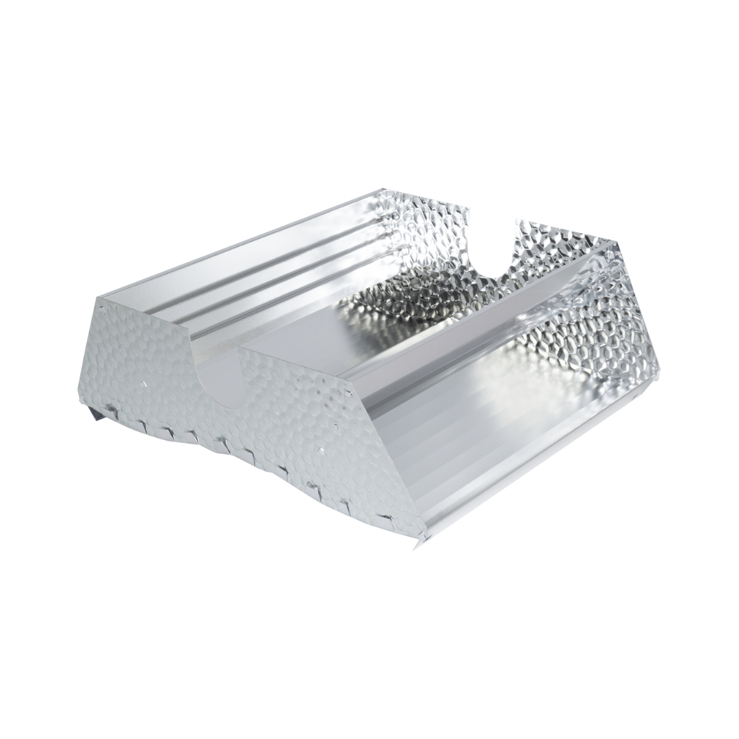 Efficiency and uniformity have been the main focus in the development of the Flowers-only reflector. Each ray of light coming from the lamp will either be transmitted directly to the plants or will only hit the 99,99% pure aluminium once, before being transmitted to the plant. The unique design of the DLI reflector results in less hotspots on the canopy and a more even plant growth.