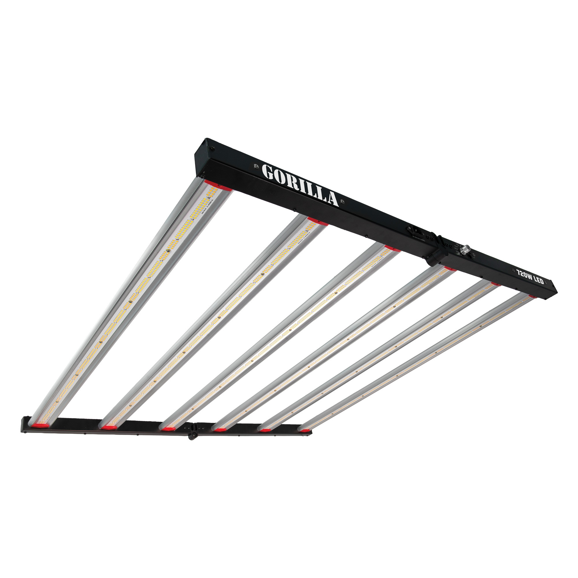 The Gorilla 720W LED GEN-III delivers 1944 µmol/s of full-spectrum light at 2.7 µmol/J efficiency, providing consistent, even coverage across 1.5 × 1.5 m areas. A 6-bar design, with onboard dimming or 0–10V option for external controllers, and foldable frame for hassle free installation and transport. Rated for 50,000 hours and backed by a 2-year warranty, the GEN-III is a reliable choice for growers who want an affordable LED without compromising on build quality.